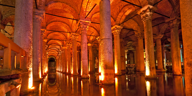 Our second day in Istanbul takes us to a number of Byzantine Relics. We first stroll to the great square which was once the . Now it is a great park like area surrounded by the Blue Mosque, Hagia Sophia, and the Underground Cistern. The Hippodrome exhibits the Walled Column, The Serpent Column and the Egyptian Obelisque from the Byzantine times and the German Fountain is located in the North end of the Hippodrome. Next we visit the , the most important Byzantine building in the world. After lunch at a local restaurant we take a short drive to The to see the climax of Byzantine Mosaic Art. We end the tour with a visit to the , commonly called the Basilica Cistern. Dinner in Istanbul.